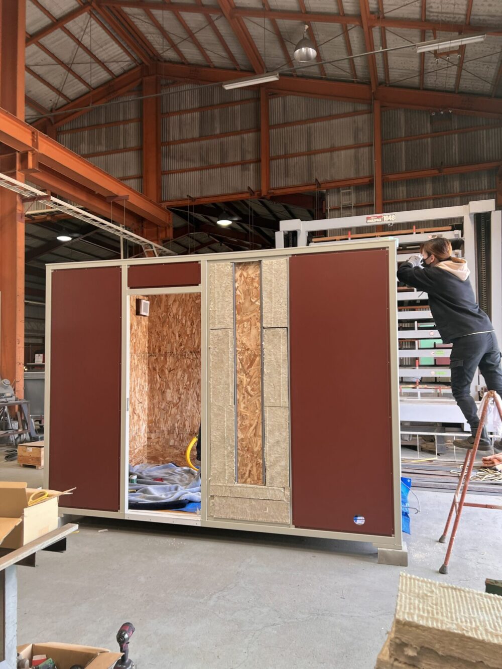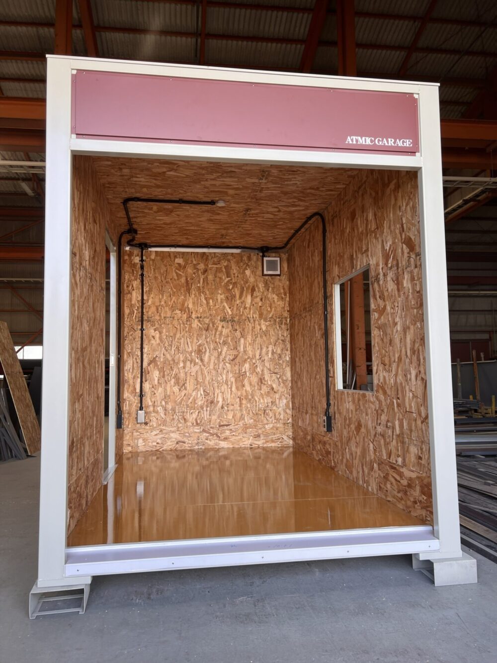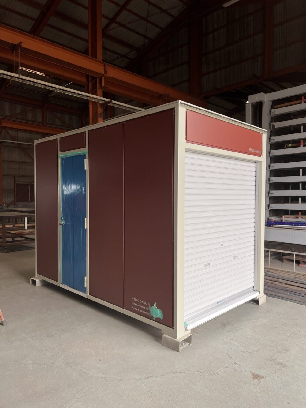 バイクロッカー1800シャッターを制作中です。 完成前です。 仕様はW1800×D2990×H2200 シャッター仕様です。 扉とFIX窓、断熱材が全面に入っています。こちらはオプションです。 電気工事も別途になります。 もう少しで完成です。 石川県に納品予定です。