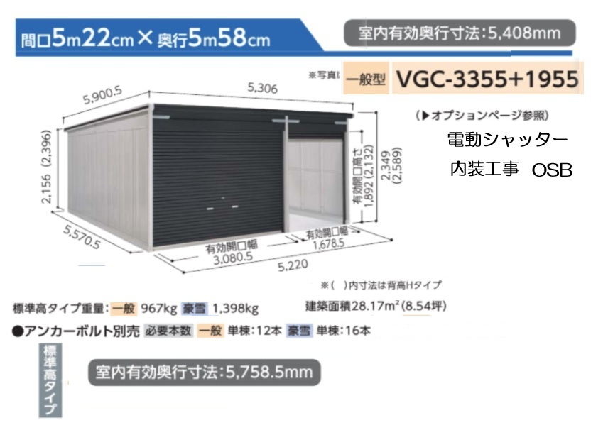 ヨドガレージ VGC3355+1955です。