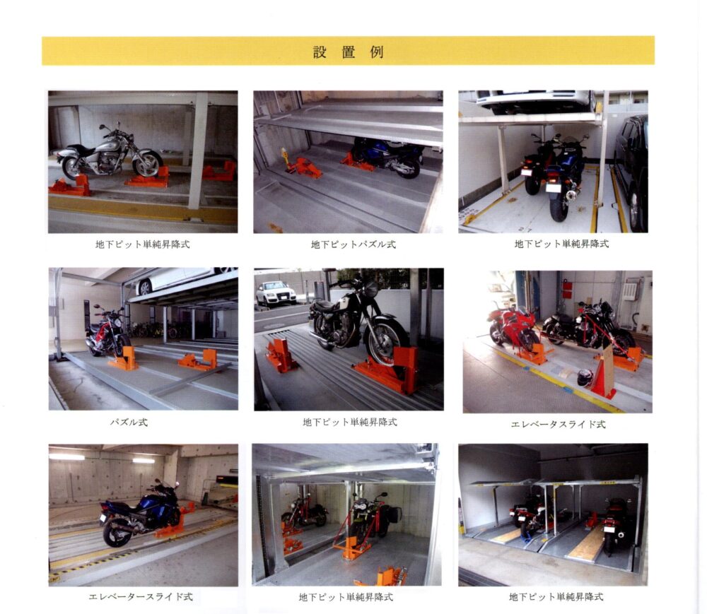 立体駐車場に設置しましたが原付から大型バイクまで利用できます。